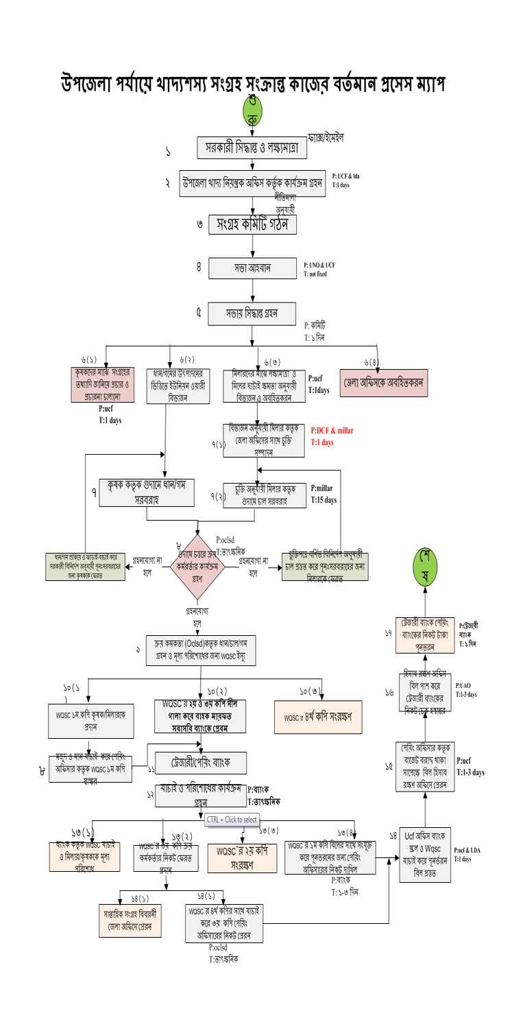 উপজেলা পর্যায়ে খাদ্য শষ্য সংগ্রহ সংক্রান্ত কাজের প্রসেস ম্যাপ